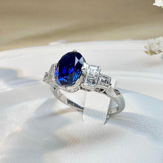 【美品】PT900 ロイヤルブルーサファイアリング 2.35ct ダイヤGIA付