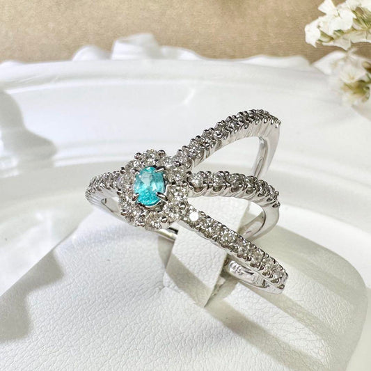 【K18WG】パライバトルマリン 0.1ct リング ダイヤ クロスデザイン