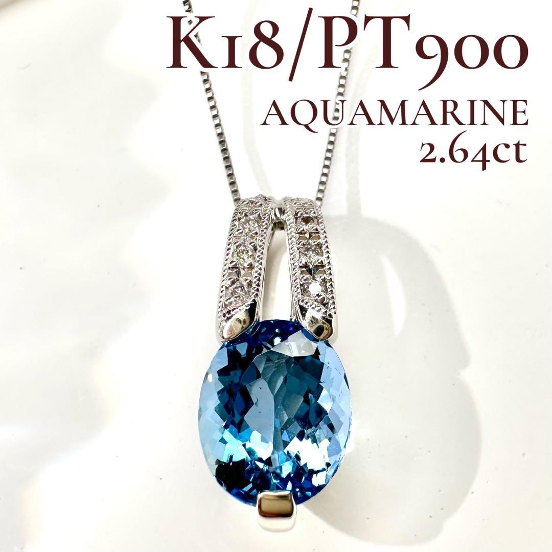 【美品】K18/PT900 アクアマリン 2.64ct ネックレス ダイヤ