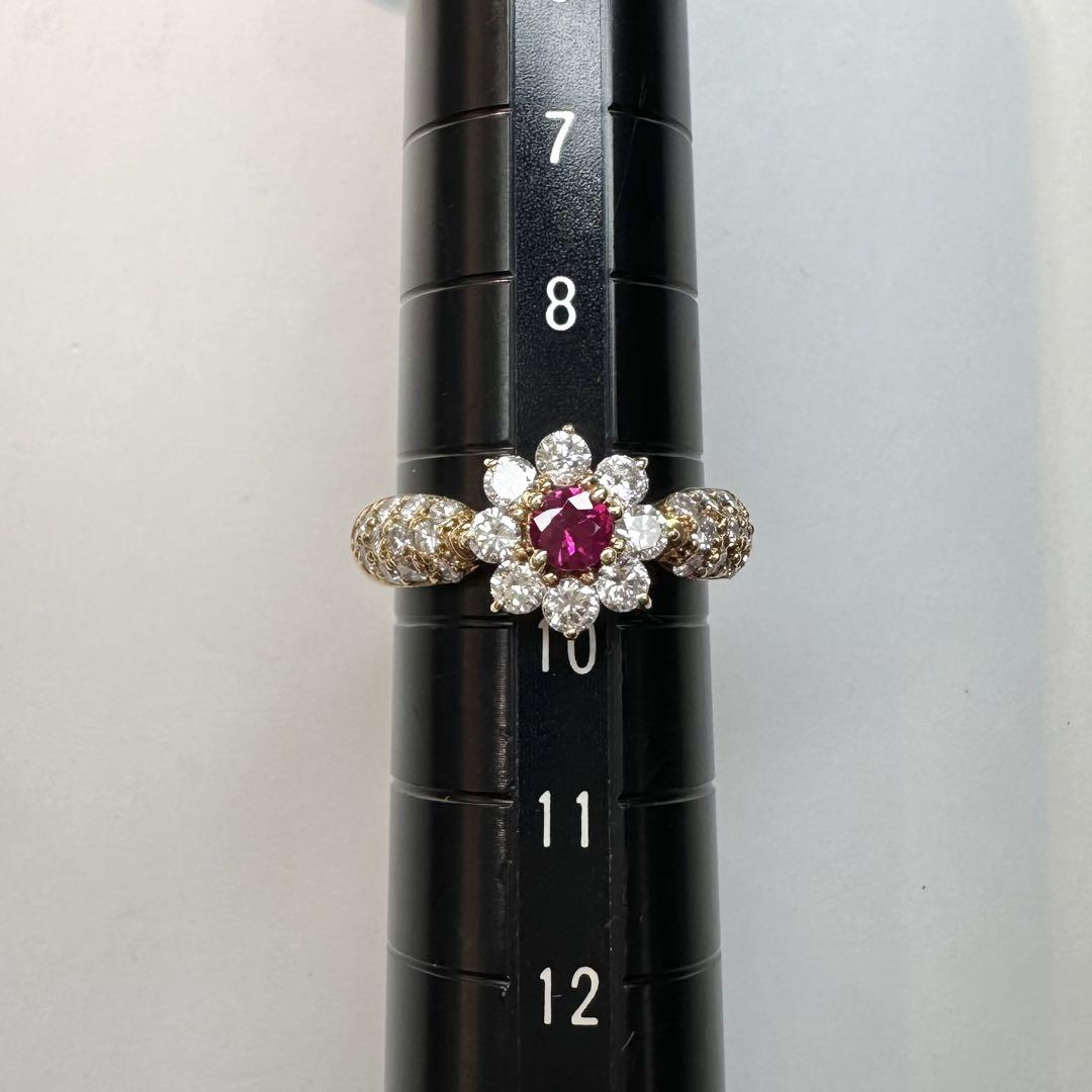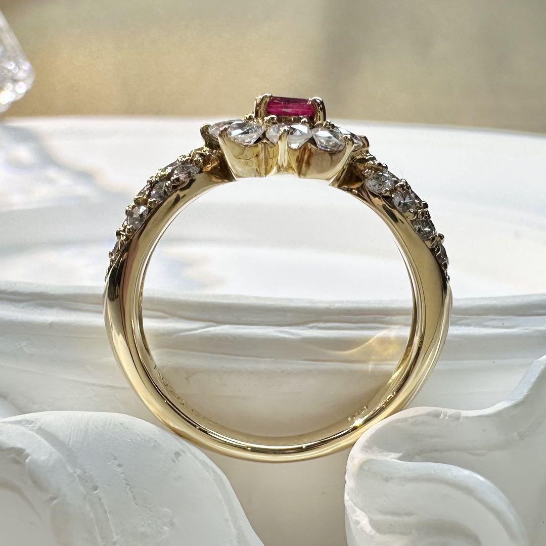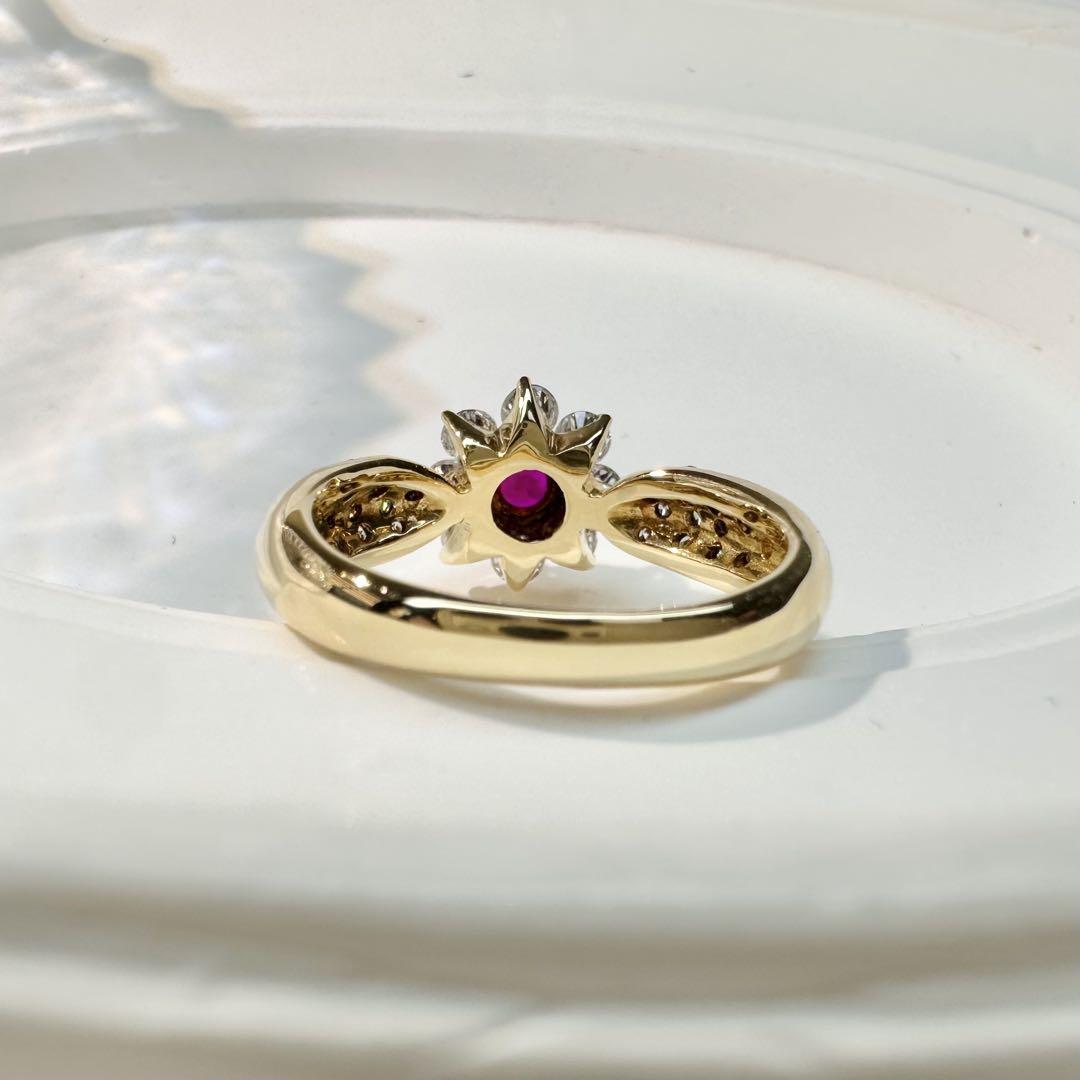 【K18】ルビー リング 0.26ct フラワー デザイン ダイヤ