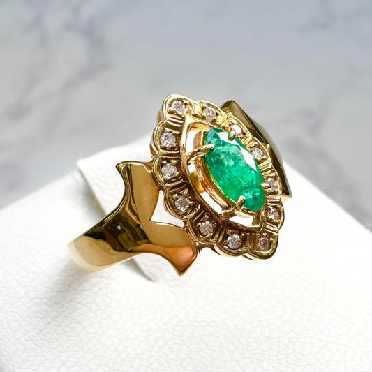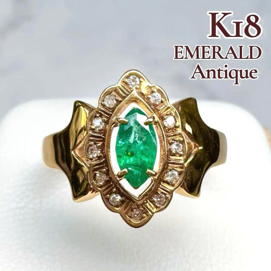 【STAR JEWELRY 】K18 エメラルド/ダイヤ リング