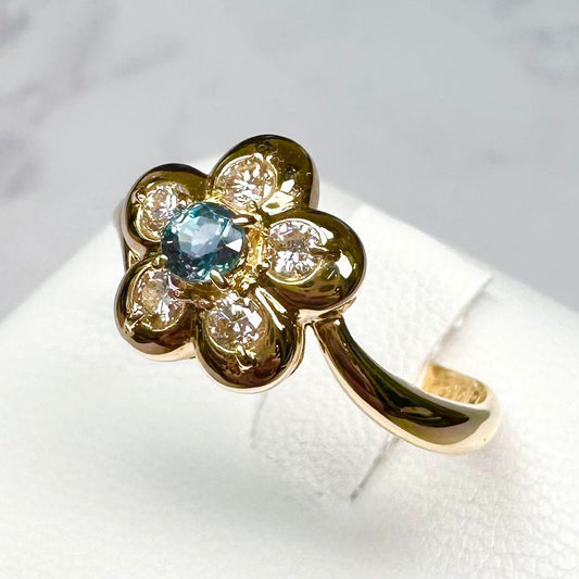 【K18】パライバ 0.03ct バタフライ&スター デザイン リング