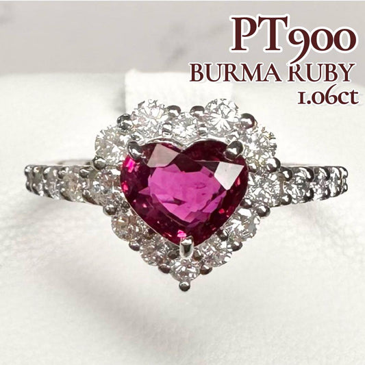 【美品】PT900 ルビー 0.71ct ダイヤ取り巻き デザインリング