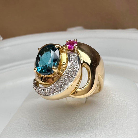 【K18YG】トルマリン 6.30ct リング 個性派バイカラー デザイン