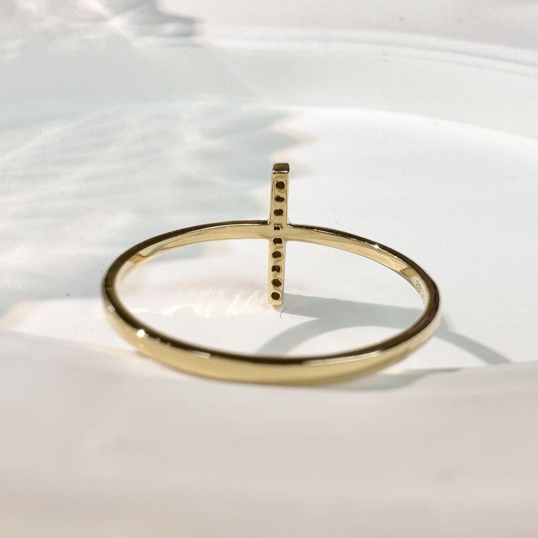 【新品】K18イエローダイヤモンド0.03ct リング 十字架