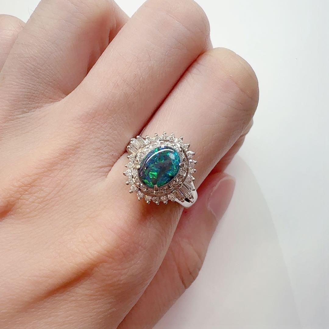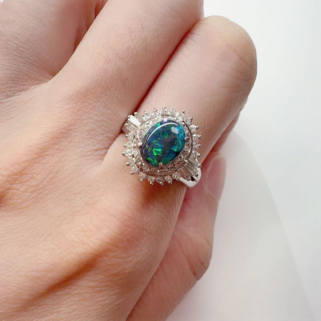 【美品】PT900 ブラックオパール 1.09ctリング ダイヤ巻き