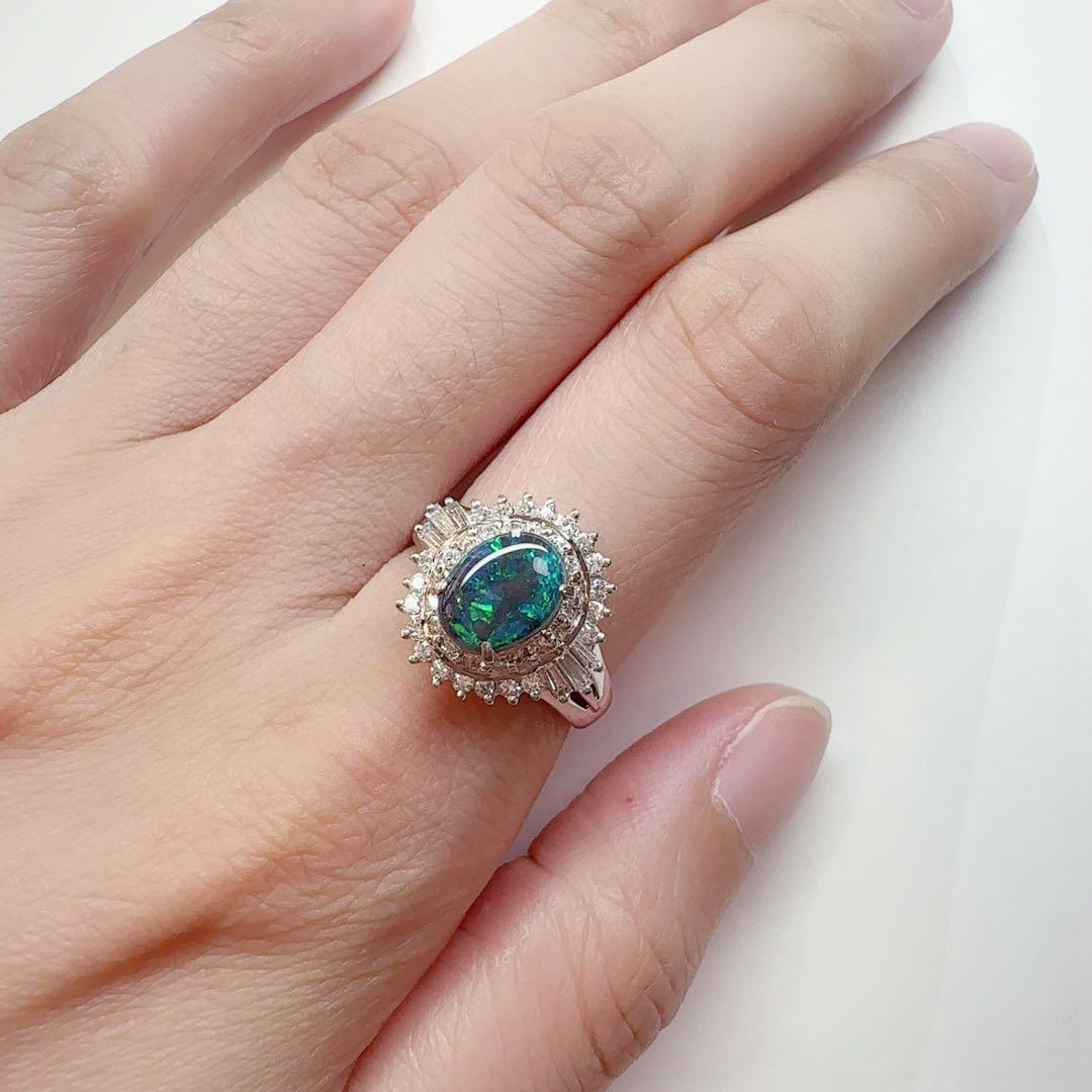 【宝石】ブラックオパール1.09ct ダイヤ0.46ct