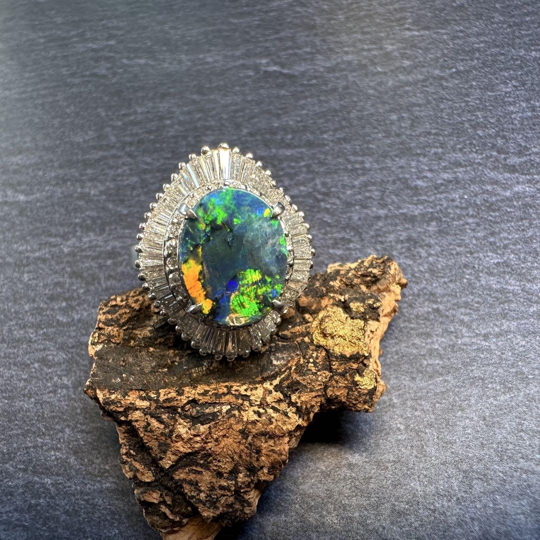 極上のプレシャスオパール、ブラックオパール2.37ctを主役にしたプラチナリング。