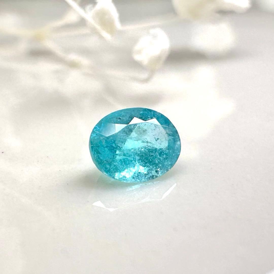 GIA鑑別書付きのパライバトルマリン・ルースです。銅およびマンガンを含有する、いわゆるパライバタイプのトルマリンで、鮮やかなグリニッシュブルーが魅力的な一石です。GIAで鑑別する時この色は非加熱の結果発送判断できなく、スキャンQRCode になっていますが、