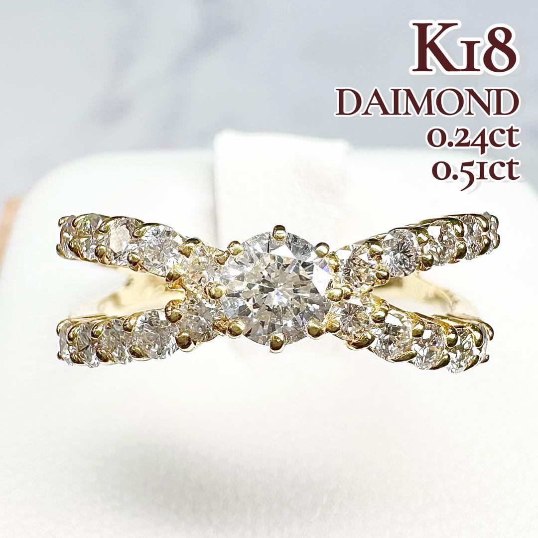 【K18】ダイアモンド0.21/0.51ctリング リング ✨クロス お姫様 ✨
