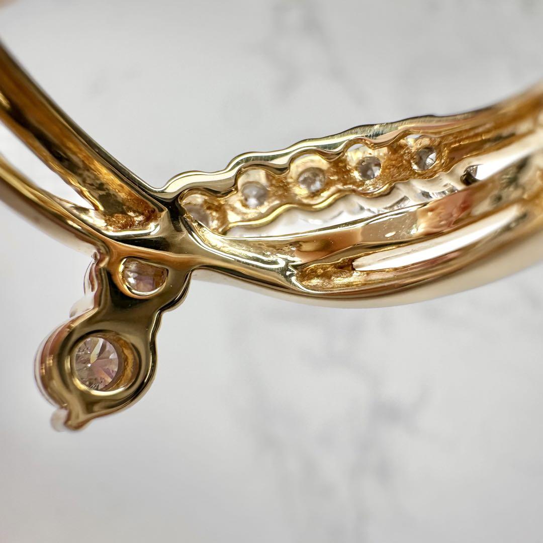リングの素材には高級感あふれるK18イエローゴールドを使用。普段使いはもちろん、特別な日の装いにもぴったりな逸品です。