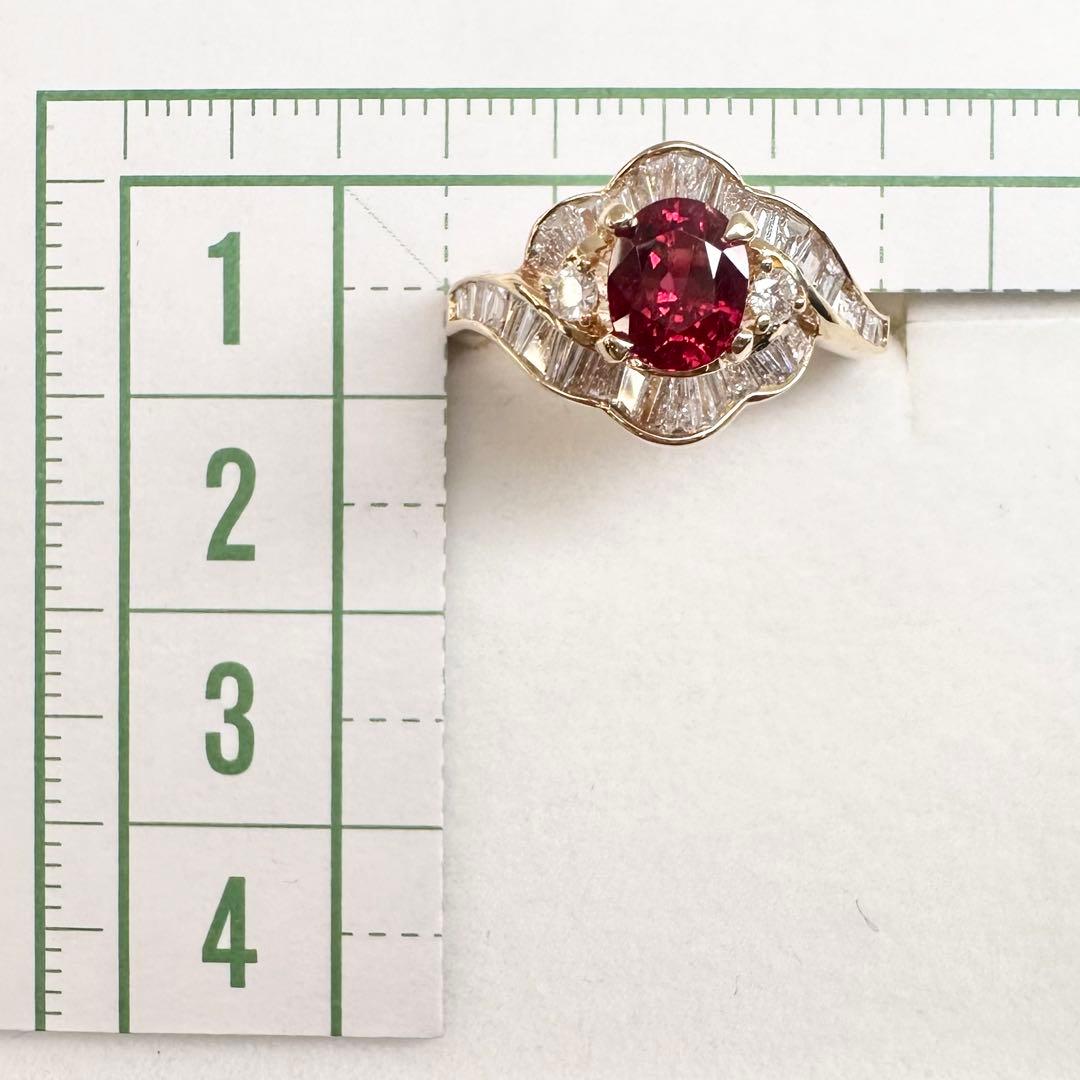 【K18】レッドスピネル 1.13ct ダイヤモンド リング